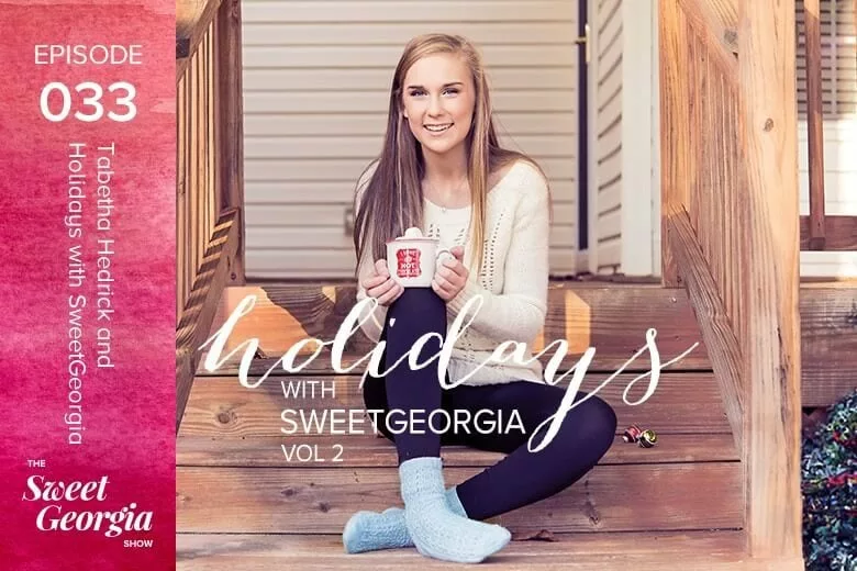 For this week’s giveaway, Tabetha and I want our lucky winner to have a PDF copy of all the new Volume 2 “Holiday with SweetGeorgia” patterns plus yarn in the colours and quantities needed for the pattern the winner decides to make. To give as many listeners as possible a chance to enter, we will keep this giveaway open until November 30th, 2016 and then draw a winner after that date. Simply enter your info below and we’ll enter you in the giveaway and also subscribe you to our SweetGeorgia updates, so you won’t miss a thing.