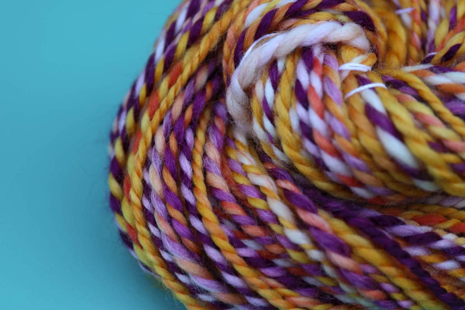 In one of our lessons one night, someone was lamenting this above thought process of a beginning spinner and I encouraged her to think about it slightly differently. My own teacher had encouraged me to think differently as well and I think of that evening every time I have this conversation: Those beginning yarns will eventually be the exact yarns we aspire to spin as we become more experienced. In my opinion, the truly experienced and masterful spinner is the one who can spin the yarn he or she desires for a given project – not always the gossamer fine yarns. It takes as much (or maybe more) practice to spin the thicker, bulky yarns that we scoffed at when we were learning!