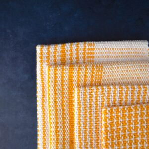 Weavers know how to celebrate their kitchen better than most makers. While knitters often begin with hats or shawls, crocheters with pillows and scarves, and sewists with blankets and bags, weavers start with towels (and they tend to accumulate quickly!). Towels offer an easy way to try new techniques, they are treasured as gifts, and they are made of cotton or linen that is simple to care for.