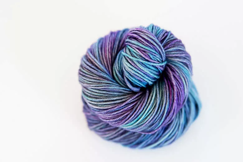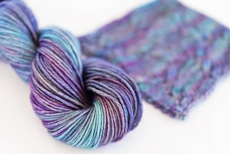 Can you blame my brain, really? I mean, everything about this is my favourite, from the array of muted purples and blues that dance like a variegated, but blend like a semi-solid (I call that “magic” for sure) to the sumptuous drape and loft of mohair, merino, and silk as if they were wed in a perfect union … It’s like … like … whiskers on kittens, by golly!