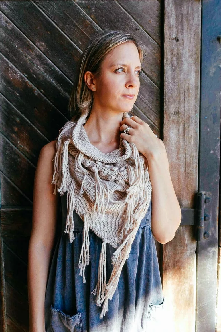 Amanda’s 54-page book includes designs (which can all be purchased individually): Color Fade Shawl, Ribbon Rock Cowl, Portobello Cowl Version 2.0, Honey Stone Cowl, Honey Stone Fingerless Gloves, Royal Flounce Shawl, and Bandana Rocks.
