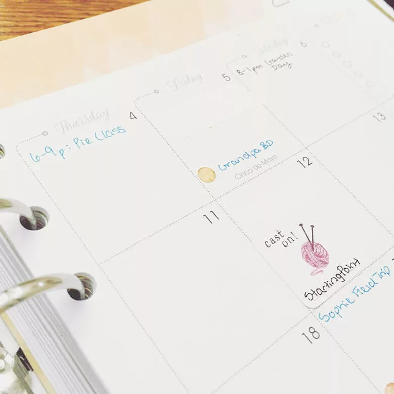 Like knitting a pattern from someone else for myself. You might have heard about Joji Locatelli’s upcoming Mystery Knit-Along? The whole gang here at SweetGeorgia has been sucked right into the excitement and we’ve all signed up to knit the mystery! I’ve picked out the Point Grey set and am soooo excited to get started that I just had to use one of my new stickers (the knitting work-in-progress set from Symposi Press) in my calendar to mark the occasion. I may be focused on self-care and slowing down, but you can’t take the planner out of the girl. Grin!