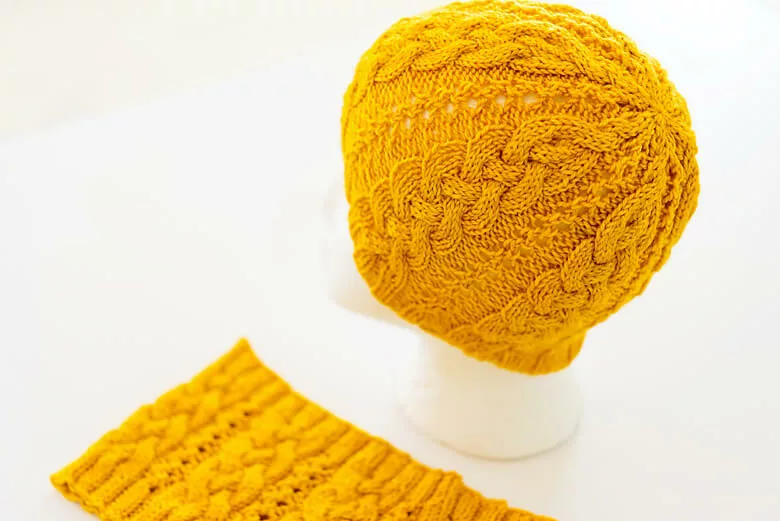 Plaited cables blended with a bit of lace captivates from cast-on to bind-off.