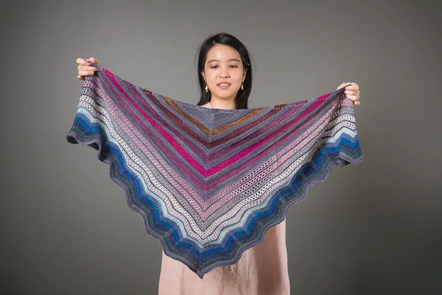 Being in the Designer in Residence program was like being Tabetha’s understudy, but an understudy that gets to go out on stage a whole lot! During my time in the program, I released 3 patterns for SweetGeorgia, including the 2021 Mystery Knit-Along Quiet Bay shawl pattern, filmed several video tutorials and a full course for the School of SweetGeorgia, and released several indie patterns featuring SweetGeorgia yarns. These projects stretched me in a variety of ways—working in tandem with multiple people on a single endeavor, managing the design logistics of a large knit-along, filming professional-quality videos, grading garment patterns for an inclusive size range, and even building up my use of color.
