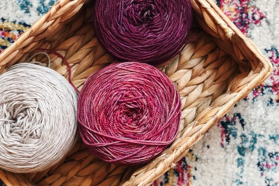 That photo of my yarns… that’s the colour combo I finally settled on for the SweetGeorgia Mystery KAL! It’s CashLuxe Spark in Linen, the first-ever skein of Tough Love Sock in Strawberry Tea, and a skein of Tough Love Sock in a new fall colourway, Elderberry.
