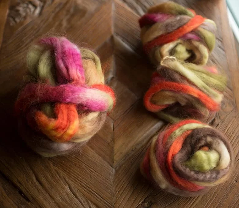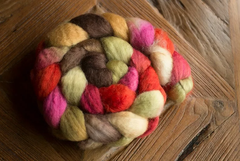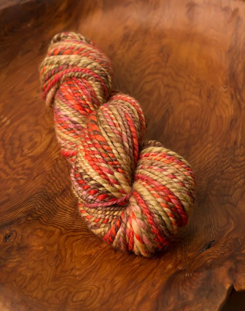 This month’s colourway, dyed on SW BFL, definitely reminded me of fall. I quickly split it up for a two ply fractal, keeping one half as is and splitting the other into three pieces.