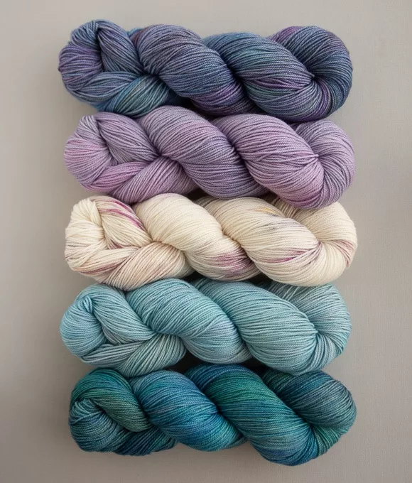 Watch the video to see all the new things, but briefly, I share about two new yarn bases that we have come out with based on the emails, suggestions, and direct feedback from our community. We’re calling it the “In Your Dreams” collection and it includes our new BFL+Silk DK and Superwash BFL+Silk Lace yarns. These two Bluefaced Leicester wool and silk blend yarns will be available in a limited palette that best showcases the cozy and hygge feel of these yarns.