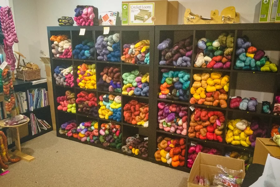 We’ve never had a sale like this before! Our studio is absolutely packed full of yarn — everything from pristine new skeins to “unexpected dye pot surprises” and we need to clear out space for even more yarn in the coming months. AND we realize that many SweetGeorgia readers and knitters who aren’t located in Vancouver would like to participate too… so we’ve created two options for you: