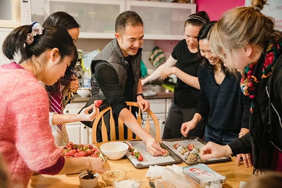 Every December, we have our annual cookie exchange that fills our tables with mouth-watering treats. To kick it up a notch this year, Heather, our dye team member with a culinary background before joining us, hosted a Chocolate Covered Strawberry workshop. She taught us how to dress up the strawberries in smart-looking tuxedoes and various chocolate swirls. YES, they tasted absolutely as good as they looked! We were also ecstatic that several former teammates were able to join us. We got to catch up and reflect on the eventful year that that just passed us by, and of course, enjoy each other’s delicious cookies too.