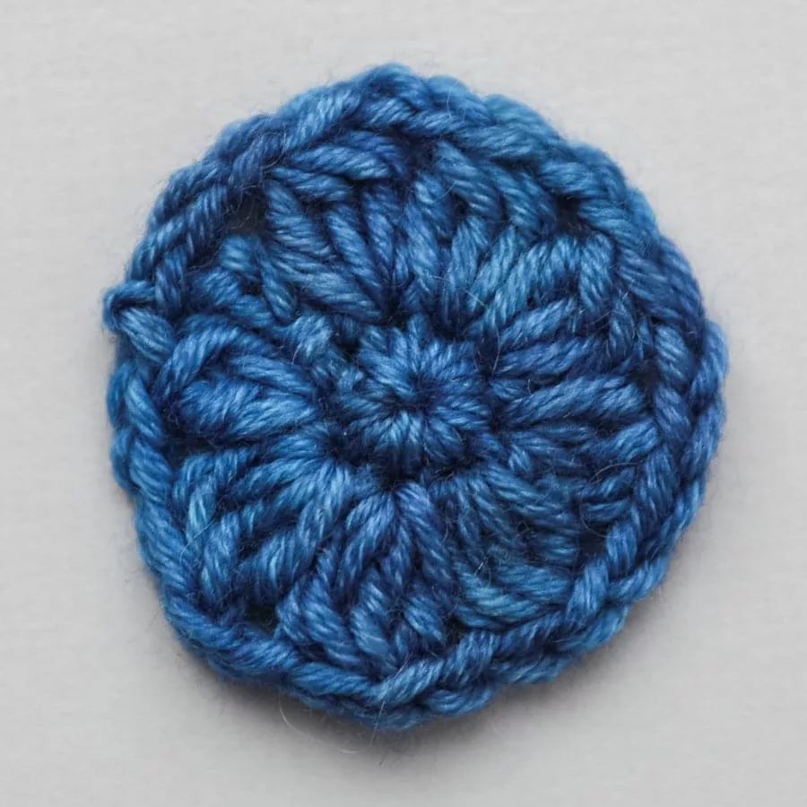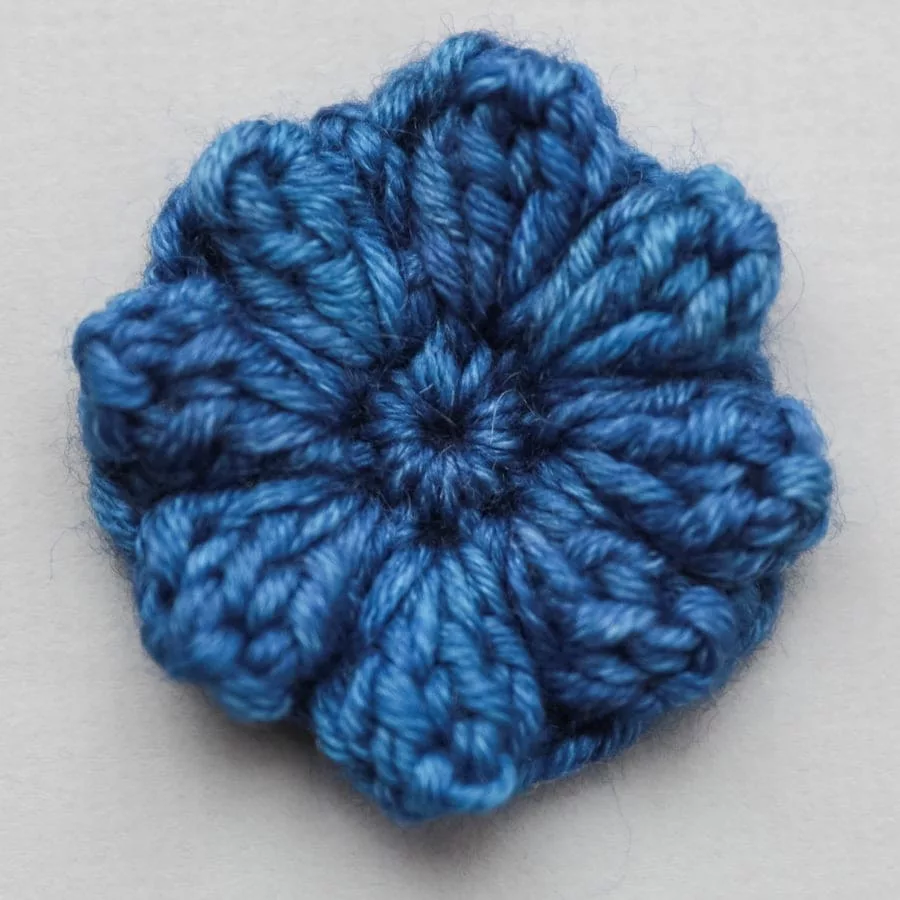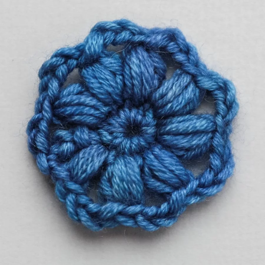 Puff, bobble, and popcorn are three very easily confused stitches. They look similar but each is composed a little differently from each other, and are used for different effect. Puff stitch and Bobble stitch are used often in motifs. The biggest difference between them is that Puff stitch is more 3-dimensional and Bobble stitch is more 2-dimensional. From the crochet samples below you can see the Bobble stitch has less spacing in between stitches compared with Puff stitch. This is because the clustered stitches in Bobble stitch expands sideways, filling in the gaps between the stitches and remaining flat. On the other hand, the Puff stitch gathers all the yarn overs together and causes the motif to expand into a 3-dimensional shape. These two stitches can be composed of at least three double crochet (or half double crochet) but most often are composed by four or five double crochet (or half double crochet). Popcorn stitch is created by clustering a fan stitch, which usually composed of five double crochet, but there are patterns used treble or quadruple crochet. Having a hollow at the back is the unique point of the Popcorn stitch.